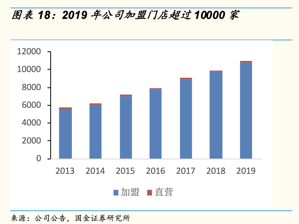 前期只需要10万左右的固定成本,让绝味食品的门店数迅速超过万家,公司在收取加盟费后,根据门店需求的订货量提供统一配送,再从收入额进行分成,和绝大多数品牌授权方式一样。