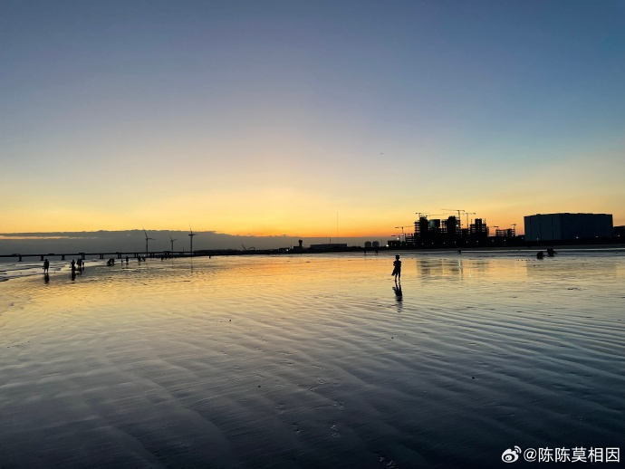 直到17:53分,照片中海边的人渐渐减少,芯芯小小的身影站在黄昏之中。