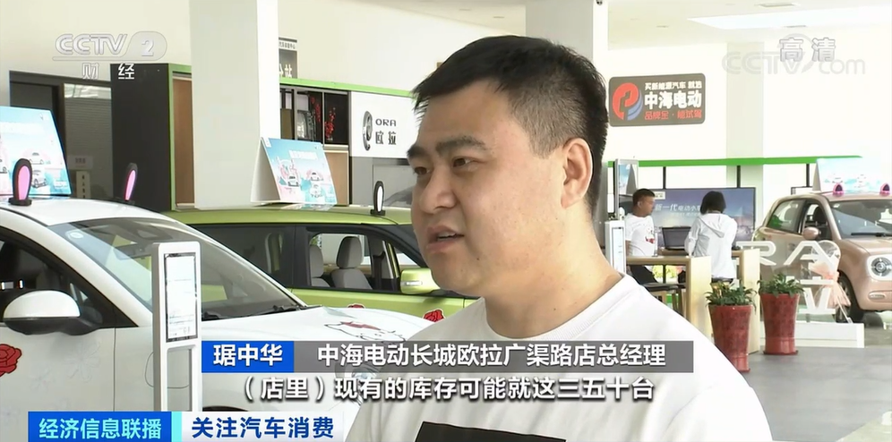 中海电动长城欧拉广渠路店总经理 琚中华:现在全球都有汽车缺芯片的情况,以前的现车销售,转为现在的订单销售了,客户需要等一段时间之后才能拿到自己的车辆。