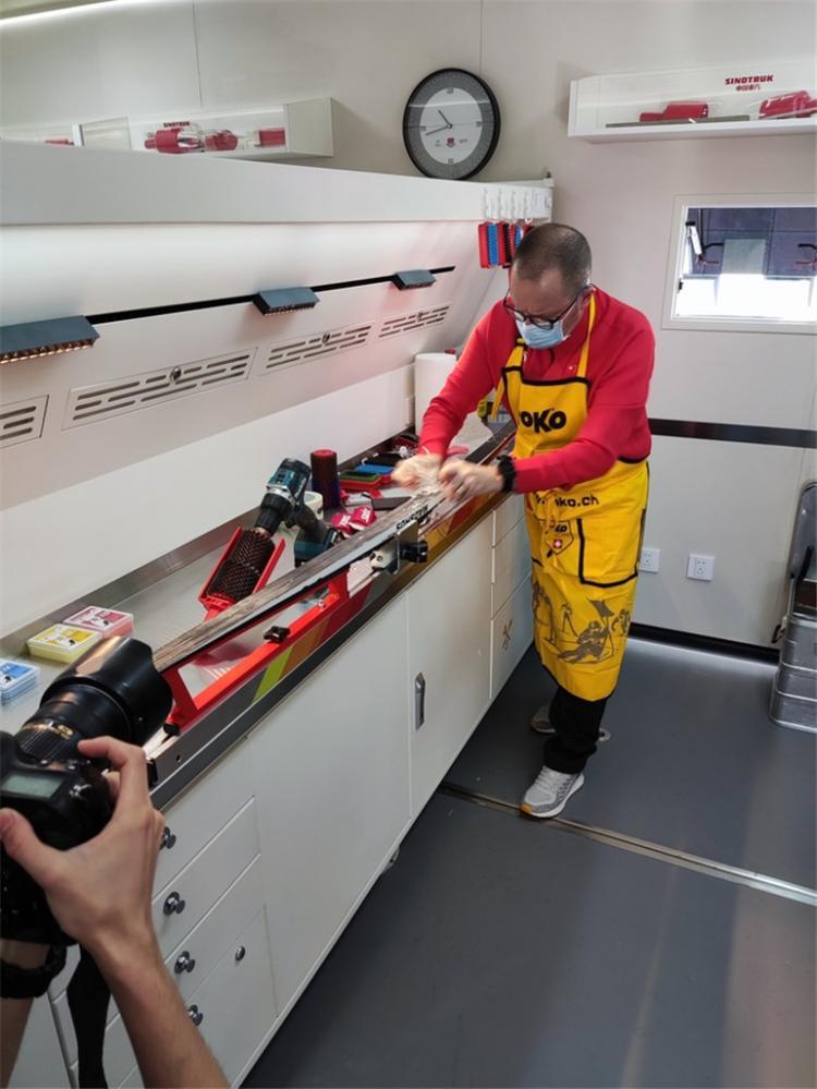 “比赛期间我们会一直跟随着国家越野滑雪队,随时保障他们对雪蜡车的使用,并每天对雪蜡车进行运维检查。”来自山东省体育产业集团的中国雪蜡车车长安泽涛告诉大众网·海报新闻记者,在这期间,每天清晨六点,雪蜡车保障团队人员就要进入雪蜡车开始做起打蜡前的准备工作。