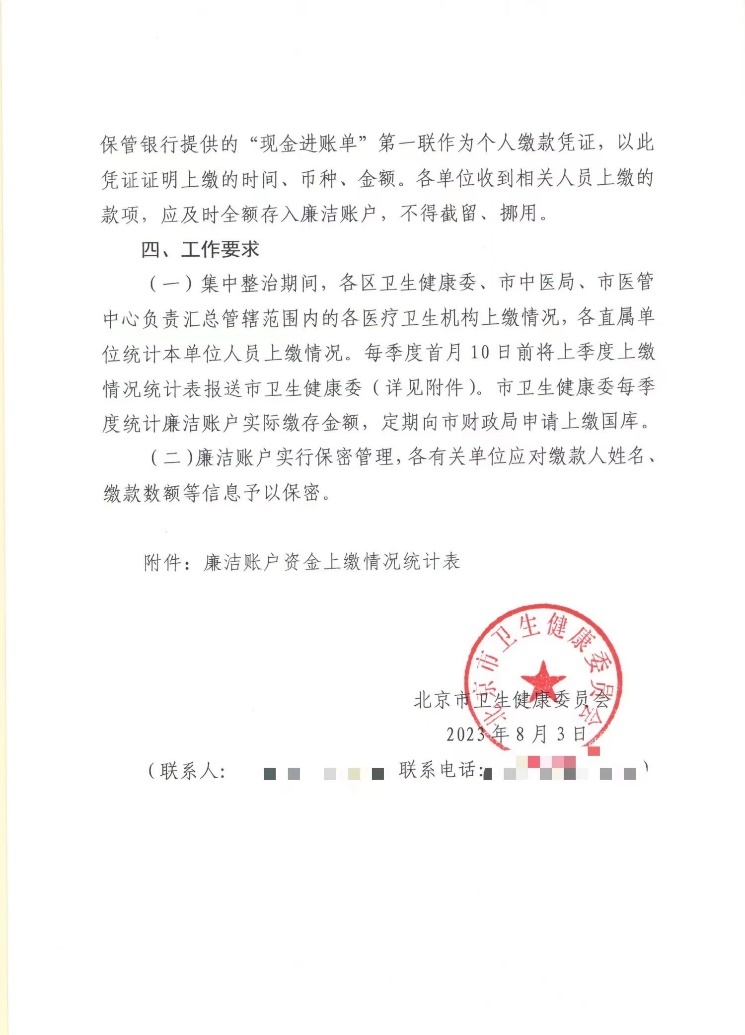 为认真贯彻落实《关于印发<北京市医药领域腐败问题集中整治工作方案>的通知》(京卫医【2023】67号),畅通相关人员自查自纠“绿色通道”,现将规范廉洁账户管理有关事项通知下: