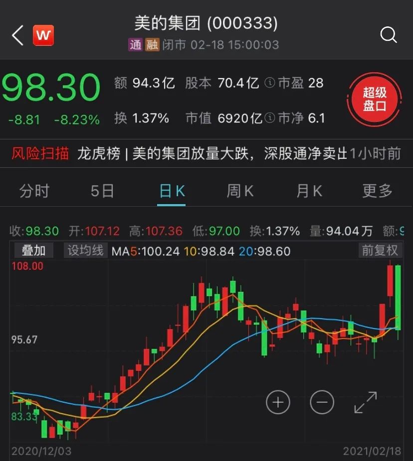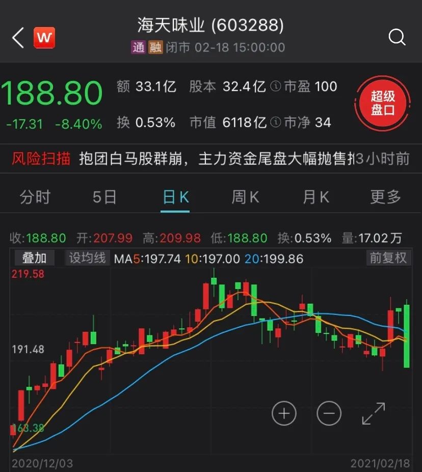 在个股普涨情况下,基金重仓股各类“茅”却出现放量下挫的走势,妥妥的“杀富济贫”行情。截至2月18日收盘,茅指数一天暴跌2.9%,板块蒸发超6500多亿。贵州茅台大幅下跌5%,美的集团下跌8.23%,海天味业下跌8.40%,迈瑞医疗下跌5.67%。