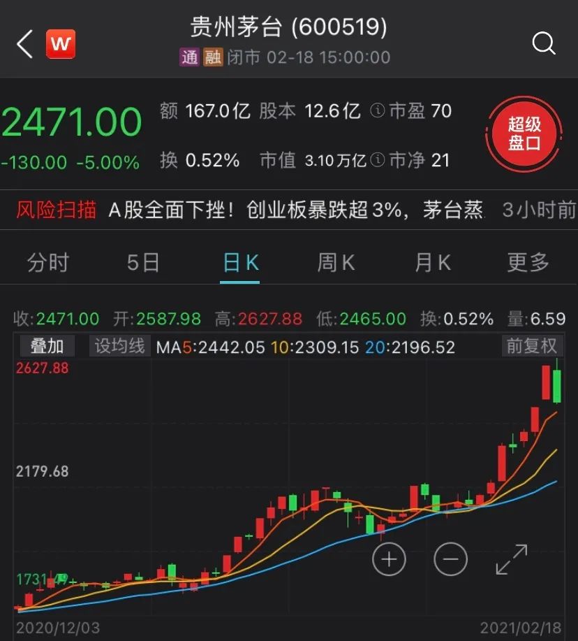 // 变化二:茅指数一天蒸发超6500亿 //