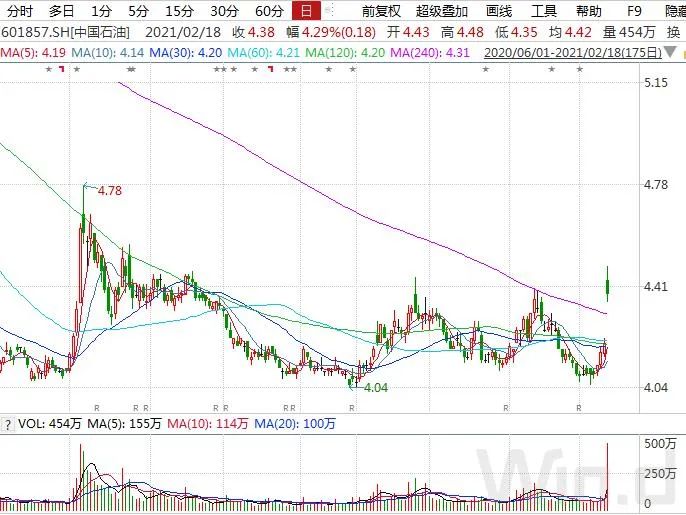 2月18日,中国石油大涨4.29%,成交金额突破20亿元,单日表现堪比2020年7月初的走势。