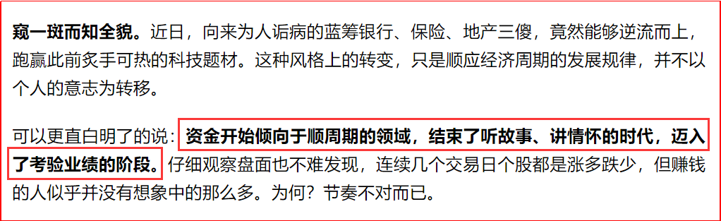 犹犹豫豫、彷徨无助,市场在过渡阶段中左右摇摆震荡难平。殊不知,摇摆的是行情,难平的是人心。市场弱水三千,可供参考的选项虽多,但正确的答案似乎只有1个——顺周期。