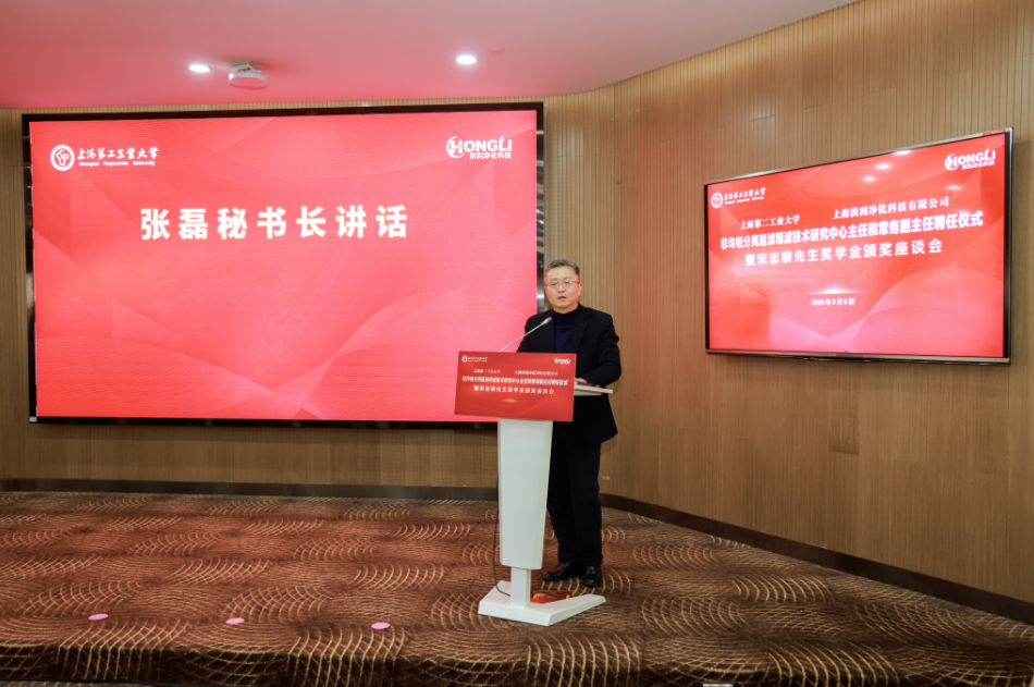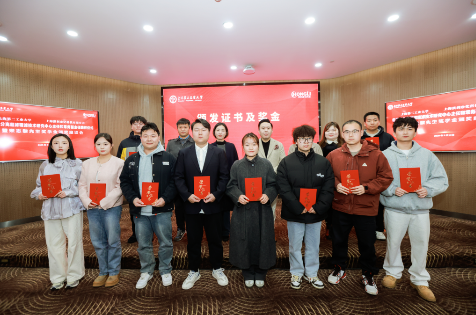 今天下午(3月6日),在上海第二工业大学学术交流中心,上海第二工业大学党委副书记、校长谢华清宣布,与上海洪利净化科技有限公司共同成立的非均相分离超滤精滤技术研究中心,将聘任洪利董事长兼总工程师宋志黎为研究中心主任,并向20名研究生颁发了“宋志黎先生奖学金”。