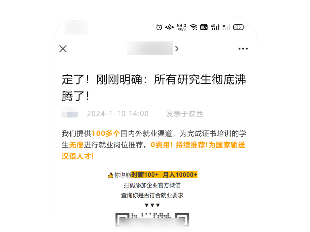 标题通过强烈煽动性的表述“彻底沸腾了”来夸大事件的影响面,让人误以为是出台了相关通知/政策,而正文实则是与标题描述不相符的培训课程广告。