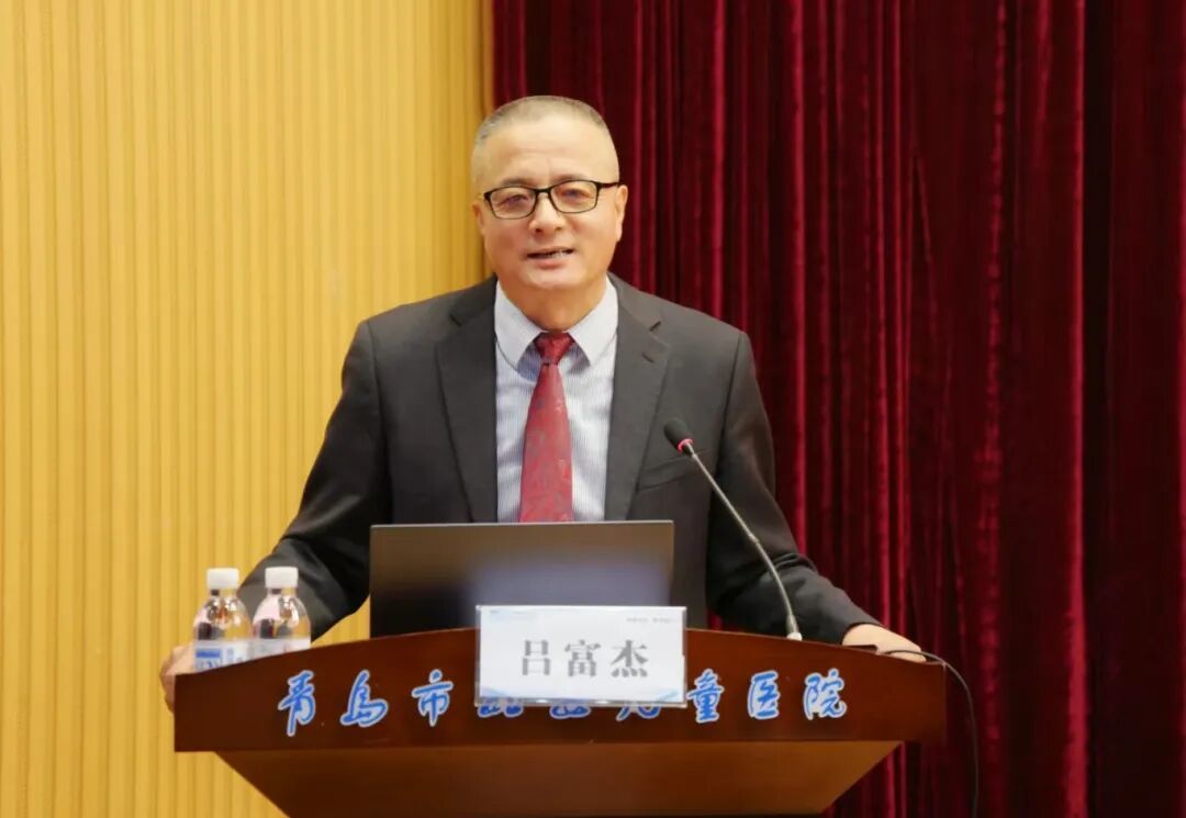 青岛市卫生健康委副局级领导干部吕富杰讲话。吕主任指出,青岛市妇幼保健协会的成立,是对新时期凝聚更广泛的专业力量的迫切回应,是多方同频共振的双向奔赴,标志着青岛市妇幼保健工作迈向崭新征程。协会要锚定国际前沿、紧跟时代潮流,凝聚力量,向新而行、向高攀登,着力打造有高度、有内涵,兼具青岛特色的创新型妇幼保健协会品牌,为新质生产力蓄势赋能,为保障妇女儿童健康而不懈努力。