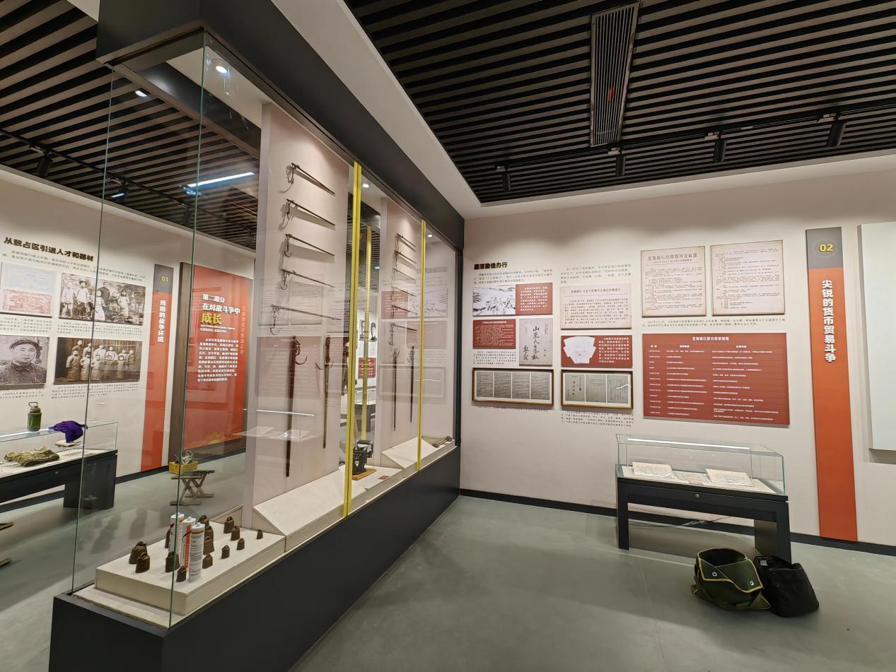 展馆布展面积500㎡,用实物、模型、图片、文字等形式展示了山东革命根据地北海银行、鲁西银行自建立至1948年12月1日,北海银行与华北银行、西北农民银行合并成中国人民银行的发展历程和辉煌成就。博物馆共计展出各种反映山东红色金融的器物、钱币、历史文献资料等700余件,影像视频资料350余分钟。展馆共分为“在抗日战火中创建”“在对敌斗争中成长”“在根据地建设中发挥作用”“在革命胜利中走向统一”四大部分,全面概括了山东红色金融从无到有、从弱到强的发展历程,着重突出了党对红色金融事业的坚强领导,详细阐明了北海银行、鲁西银行等红色金融机构所发挥的重大历史作用,体现了“创业 奉献 清廉 为民”的山东红色金融精神。