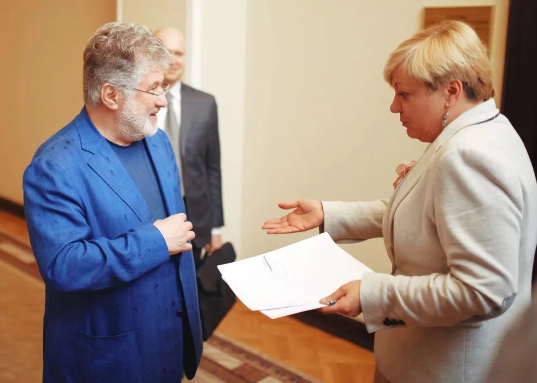 ▎2016年, 科洛莫伊斯基同乌克兰央行行长 瓦莱里亚·戈塔里瓦 会面 图源/Bloomberg