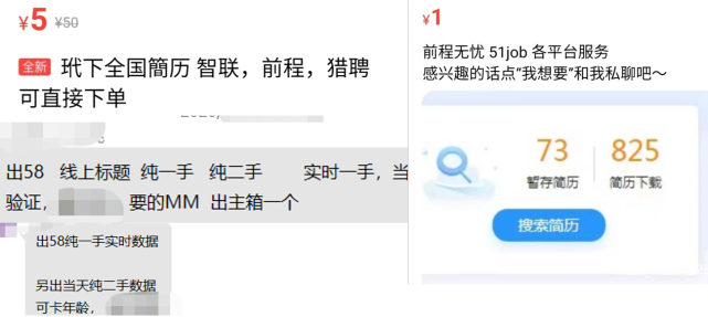 大量获得简历后,就衍生出了简历买卖服务。
