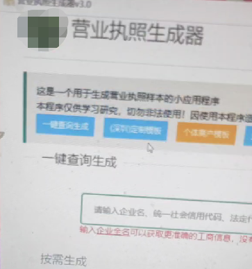 雷达财经调查发现,在有关"58、智联、前程"的交流QQ群中,有卖家出售名为"营业执照生成器"的应用程序。据该卖家介绍,只需输入企业信息,选择模板,就可生成营业执照,且该执照"亲测"可通过58等平台的认证。