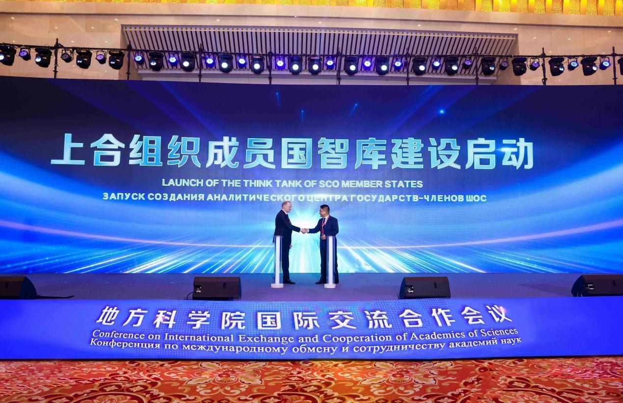 开幕式上举行了上合组织成员国智库建设启动仪式,古萨科夫、孙海生上台摁下启动按钮。