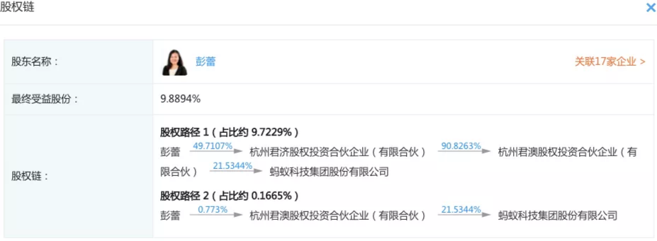 彭蕾的最终受益股份高过马云,9.89%,折合人民币大概2077亿!