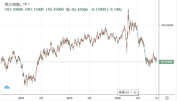 对于人民币兑美元走强,市场认为主要原因是美元指数走弱。美元指数已经回到四年前水平。