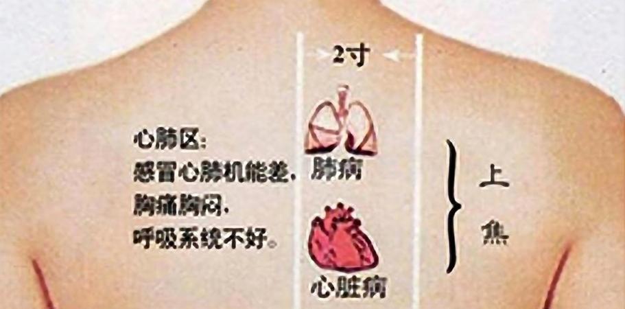 选取肺在背部的反应区(如图所示),进行按、摩、推、揉等手法治疗,以调畅气机,开宣肺气,改善部分阳虚患者容易感冒咳嗽、心肺功能差等上焦阳虚症状。
