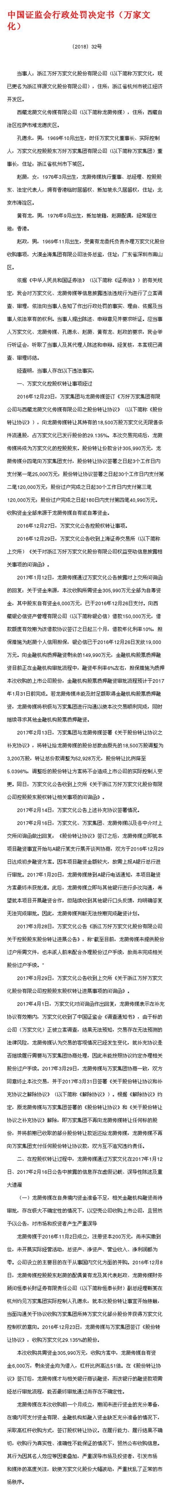 证监会16日晚公布了对万家文化的行政处罚决定书和相关人员市场禁入决定书: