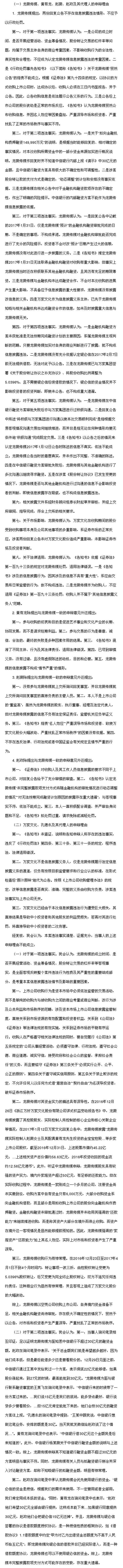 第二,本人不是上市公司的“董监高”,对龙薇传媒披露的信息不负有法定保证责任,监管机关应负举证义务。
