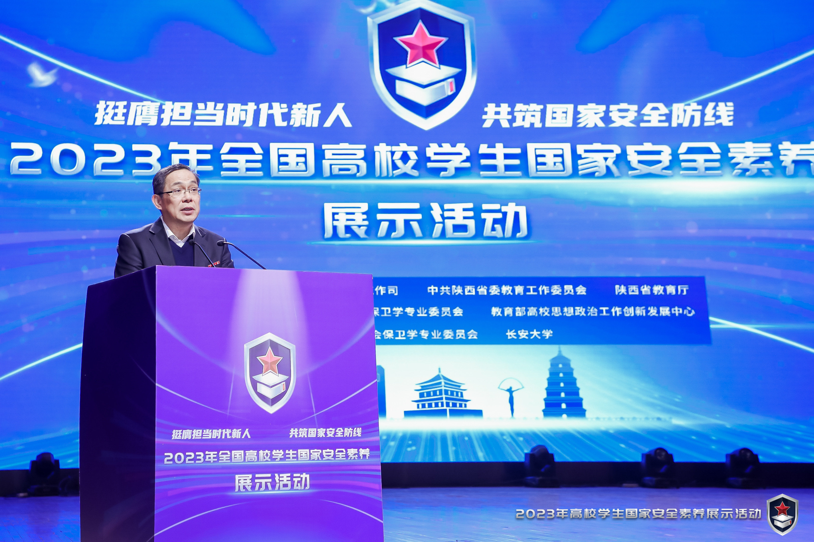 4月13日,在第八个全民国家安全教育日即将到来之际,主题为“挺膺担当时代新人,共筑国家安全防线”的2023年全国高校学生国家安全素养展示活动在长安大学举行。教育部思想政治工作司,中国高等教育学会保卫学专业委员会理事长单位、中共陕西省委教育工委、陕西省委宣传部、陕西省委网信办、陕西省公安厅等相关负责同志出席活动,全国28个高校代表队的200余名学生参加了本次展示活动,近1000名师生现场观摩。