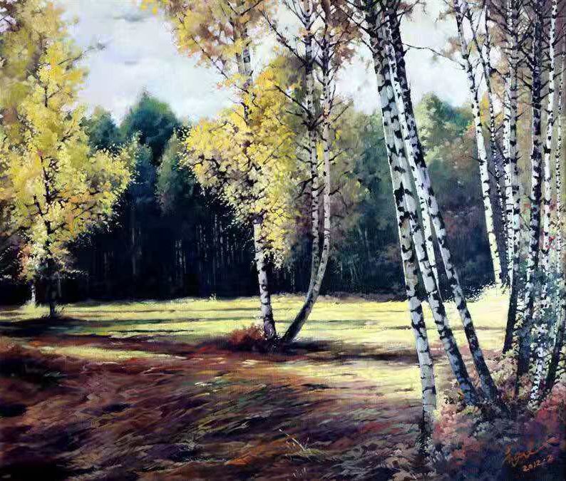 赵纯 亚麻布油彩《呼伦贝尔秋色》80X60cm