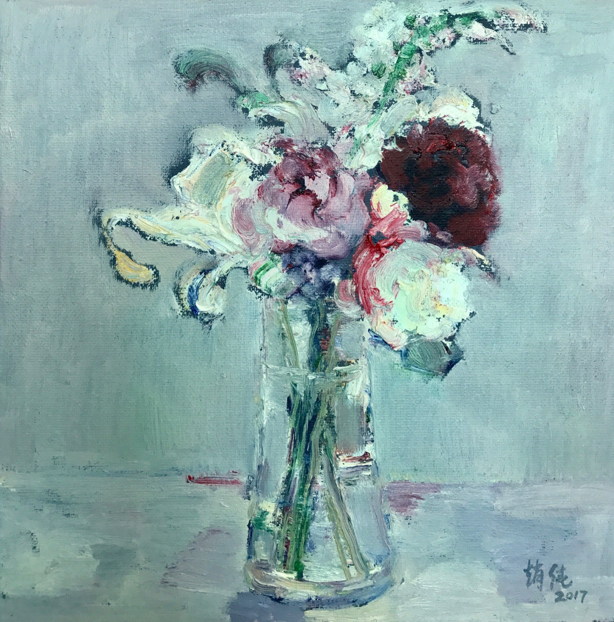 赵纯 亚麻布油彩《姹紫嫣红》30X30cm