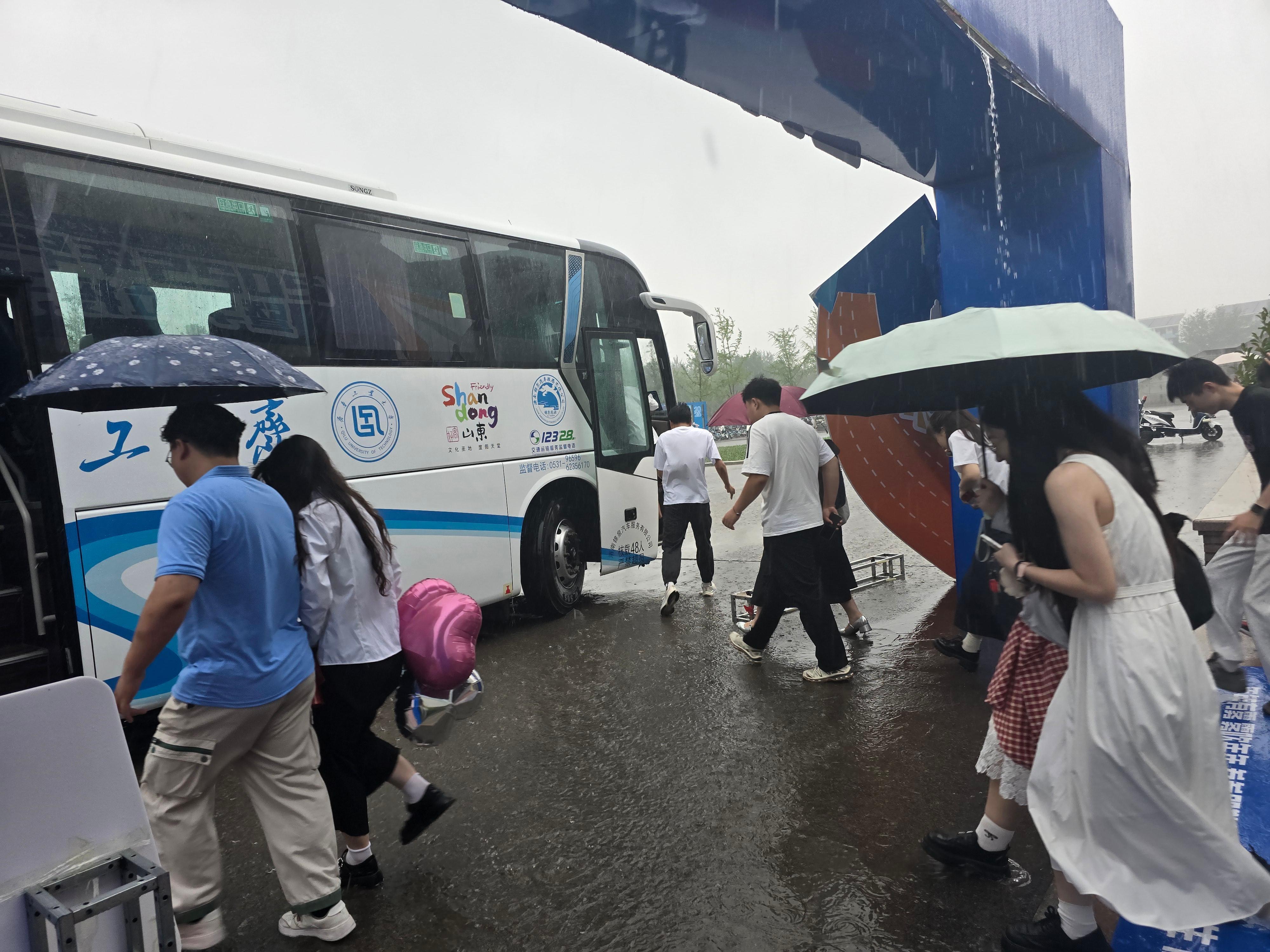 6月19日上午,齐鲁工业大学(山东省科学院)长清校区艺体中心礼堂内,2025届本科生毕业典礼刚刚落下帷幕。毕业生们正沉浸在离别的感怀与未来的憧憬中,岂料天公不作美,一场倾盆大雨突然袭来,让千余名未带雨具的学生滞留在活动现场。
