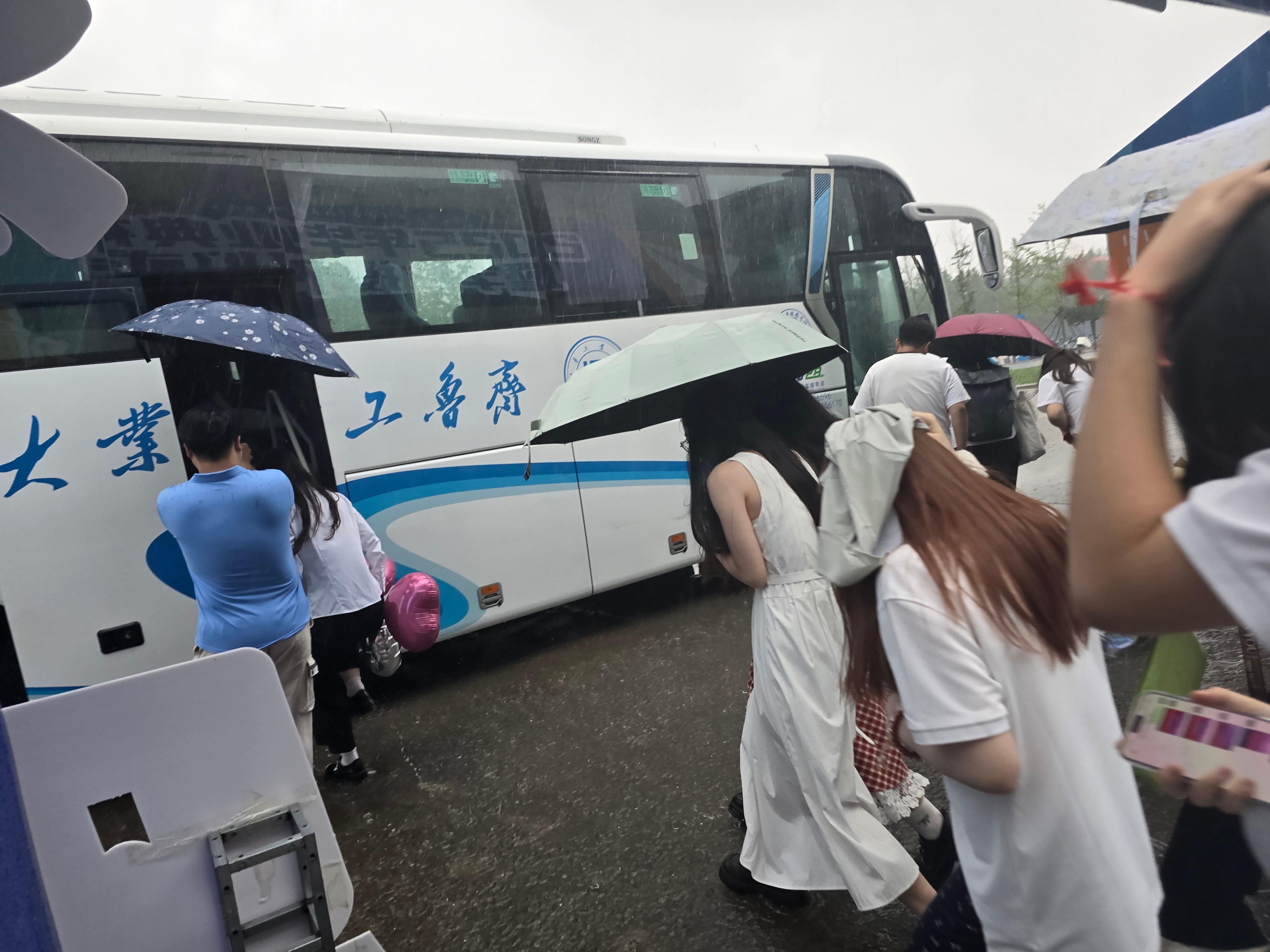眼看雨势越来越大,校(院)领导第一时间协调资产处、后勤处、学生处等相关部门,紧急调集校内通勤班车,为滞留学生提供无偿接送服务。“不能让毕业生淋雨回宿舍!”一声令下,多辆班车迅速集结,组成“暖心专车”,冒着大雨驶向艺体中心门口。更令人感动的是,现场不少老师自发驾车加入护送队伍。“能送一个是一个!”老师们摇下车窗招呼学生的画面,成为雨中最美的风景。