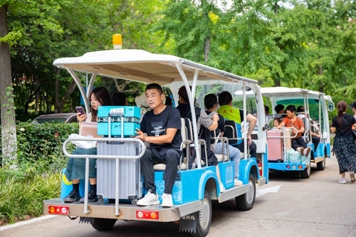 家校共育暖人心。报到当日,各二级学院组织家长见面会等活动,进一步加深家长和学院之间的联系。旅游学院开展了“家长校园导游团”活动,志愿者带领家长在感受校园环境的同时,了解了学校的发展历程和未来规划。宣传部新媒体志愿者为新生与家长在熙熙攘攘的人群里定格下一张张美好的瞬间。团委安排了摆渡车往返于校门及各宿舍楼之间,为新生及家长提供运输行李和接送服务。学校还设置了几处家长休息区,师生志愿者耐心向新生和家长解答问题并叮嘱入校后的注意事项。这是时隔3年后,家长再次陪同新生一起入校报到。校园里,时时都有笑颜、叮嘱和祝愿,处处都是细心、暖心和真心。热情的服务、周到的安排让新生家长倍感放心和温暖。