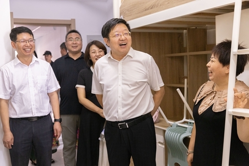 青岛职业技术学院党委书记王金生,党委副书记、院长秦青松,副院长乔璐、刘宏一行分别前往“东区”“西区”学生公寓、迎新报到点、专业咨询岗、志愿服务岗等处,详细了解各二级学院迎新工作进展、新生报到情况,学生公寓条件、服务保障措施、迎新特色工作等,看望前来报到的新生及家长,与他们亲切交流并送上关心与祝福。