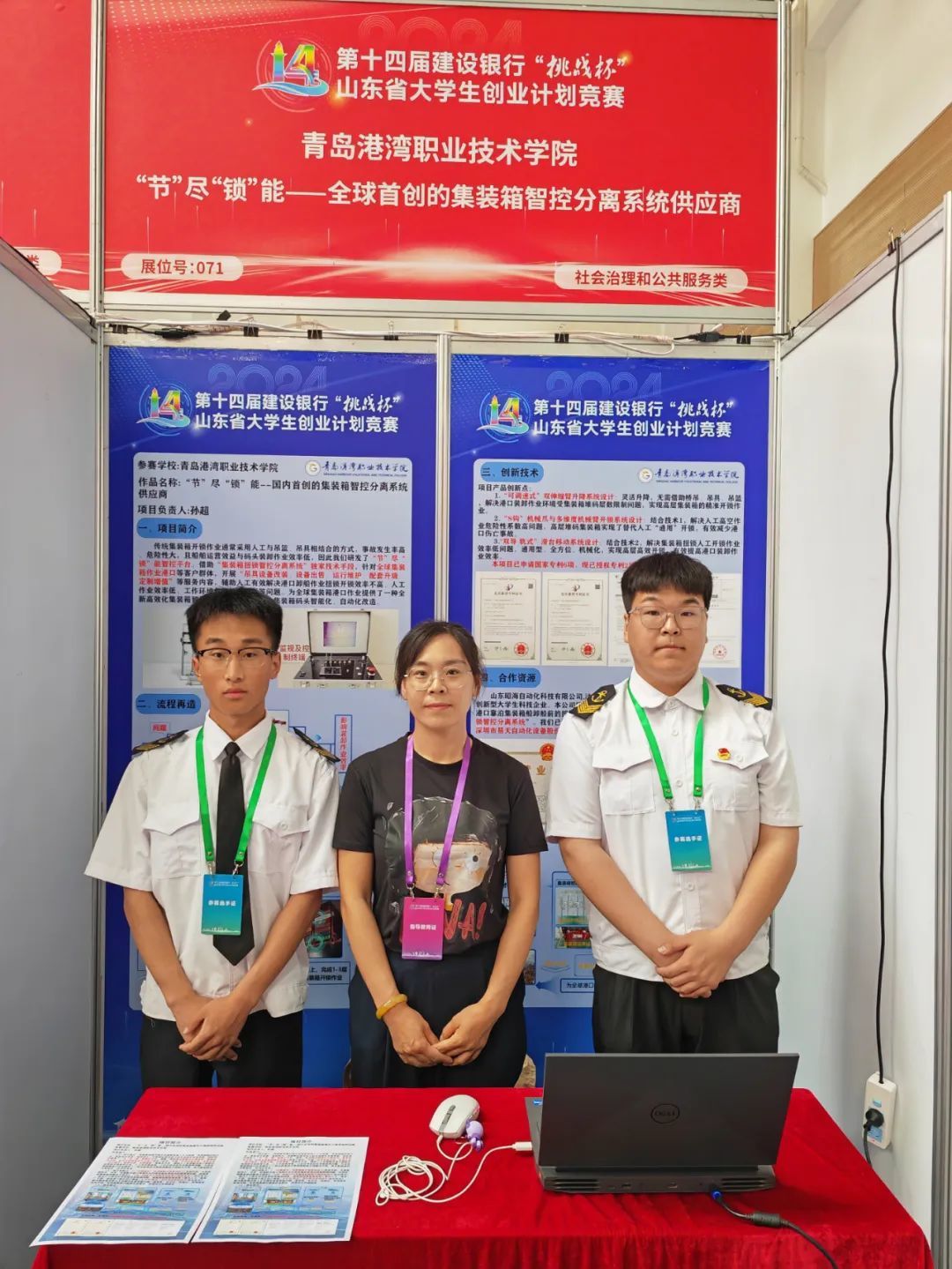 很荣幸能够代表港湾学院参加第十四届建设银行“挑战杯”山东省大学生创业计划竞赛,我们的项目“节”尽“锁”能-全球首创的集装箱智控分离系统供应商,在社会治理和公共服务类项目中荣获金奖!这份荣誉凝聚着团队每一位成员的辛勤努力与精诚协作,是大家齐心协力、日夜拼搏的成果。同时,衷心感谢校团委和指导老师们给予的悉心教导和无私奉献,是你们引领我们让项目得以不断完善与提升。