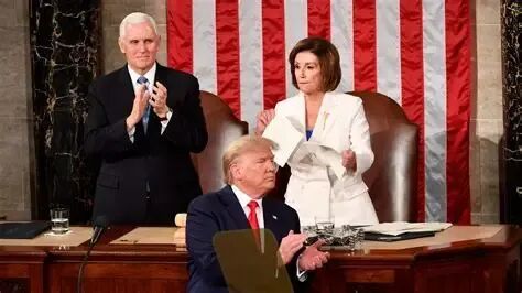 人们印象中最深刻的照片,就是特朗普在国会发表国情咨文,背后的佩洛西,将他的国情咨文一张张撕掉。
