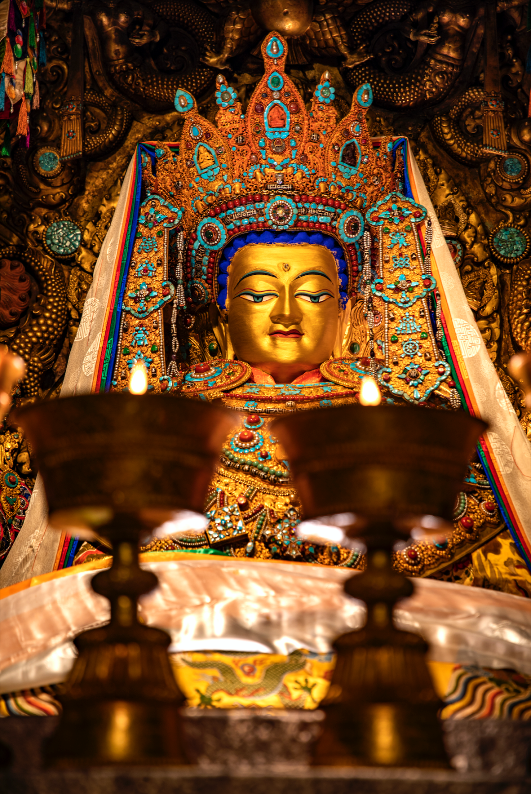 大昭寺内不仅供奉有释迦牟尼十二岁等身像这件稀世珍宝,还供奉着苯教、宁玛、萨迦、噶举、格鲁等教派所崇奉的佛、菩萨、本尊、祖师、护法诸神像。