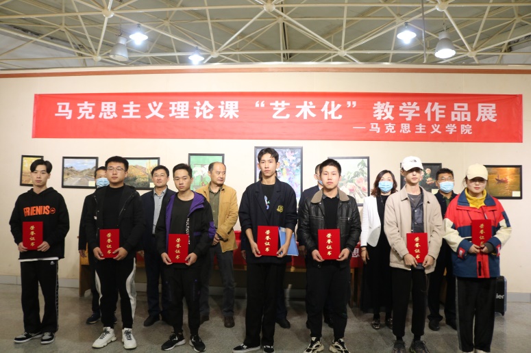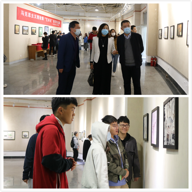 为贯彻落实习近平总书记重要讲话精神,深入探索基于不同专业背景大学生的思政课教学方式,实现精准思政,提高思政课的实际教学效果,山东理工大学马克思主义学院针对艺术专业大学生的实际学习特点,开展了思政课“艺术化”教学模式的探索。2020年10月16日,山东理工大学马克思主义学院在美术学院展览厅举行了第二届“马克思主义理论课”艺术化教学作品展,展出2018级美术学院各专业大学生在学习《马克思主义基本原理概论》课后,用自己擅长的表达方式表现对马克思主义基本原理的理解。山东理工大学教务处、团委、美术学院、马克思主义学院的领导和老师出席作品展开幕式。
