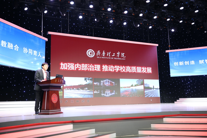 论坛上,齐鲁理工学院副校长张庚灵做了题为“加强内部治理,推动学校高质量发展”的报告,介绍了学校近年来发展的突出成就,重点围绕应用型高校建设从治理体制、产教融合、教师队伍、教学资源、人才培养、学生发展、学科科研、文化育人、国际交流与合作、办学特色等十个方面谈了学校的经验做法、思路和取得的成效,突出介绍了学校在“3S”人才培养模式、齐鲁文化育人、养成教育等方面的特色与亮点。