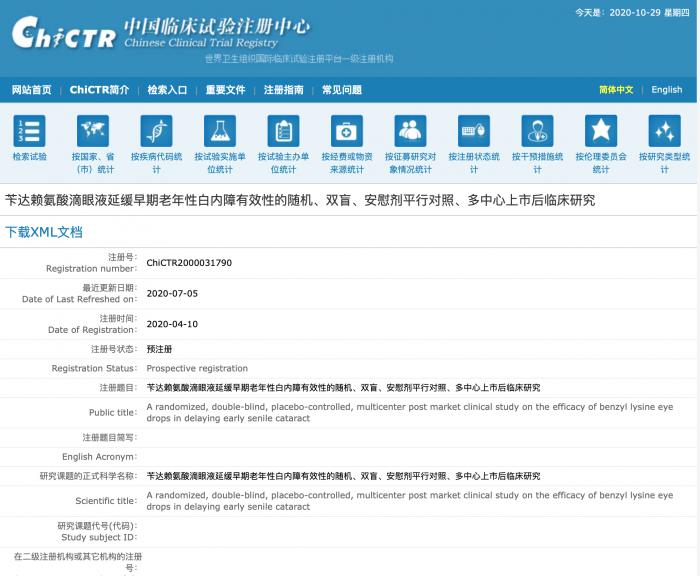 最新的2020年三季报披露,中山大学中山眼科中心等7家单位已通过伦理委员会的审查。