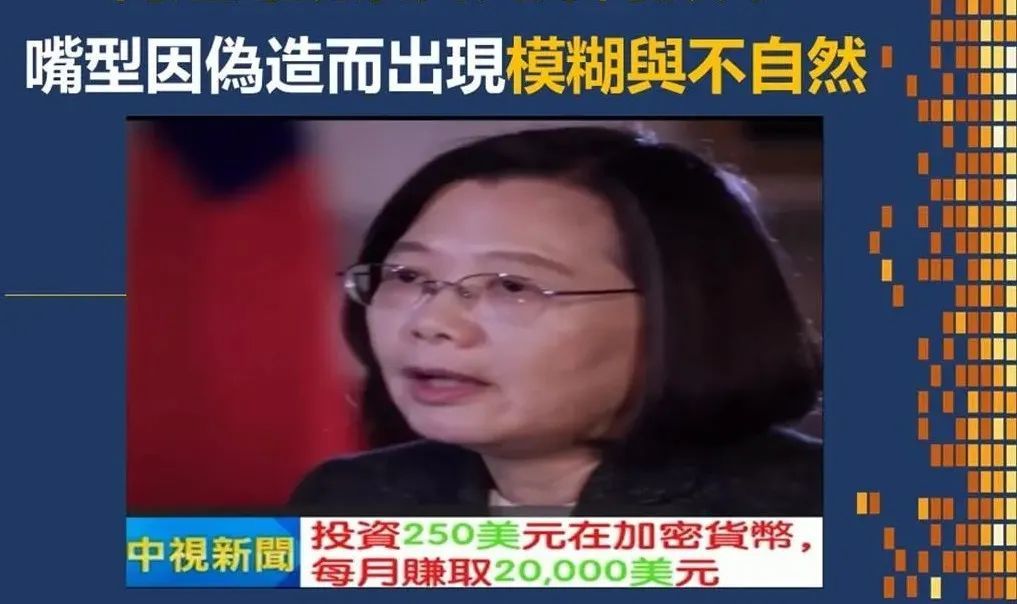 ▎2024选举前夕,利用AI技术换脸蔡英文、赖清德公开谈论加密货币投资的视频在社交媒体疯传。