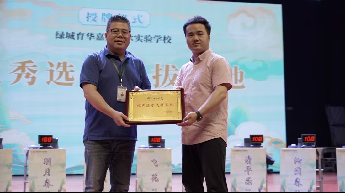 绿城育华嘉兴长水实验学校是一所九年一贯制公办学校,学校高度重视书香校园建设,开展了阅读节、漂流书市、班级共读、亲子共读、古诗词教学展示、专家讲座等丰富多彩的活动。本次诗词大会面向1-9年级全体学生进行初赛选拔,共选出30名选手,以1-3年级,4-6年级,7-9年级各一名学生的配置进行组队,开展现场角逐,充分展现九年一贯制的贯通与融合。活动现场,浙江诗词大会组委会为学校授予了“优秀选手选拔基地”荣誉牌匾。