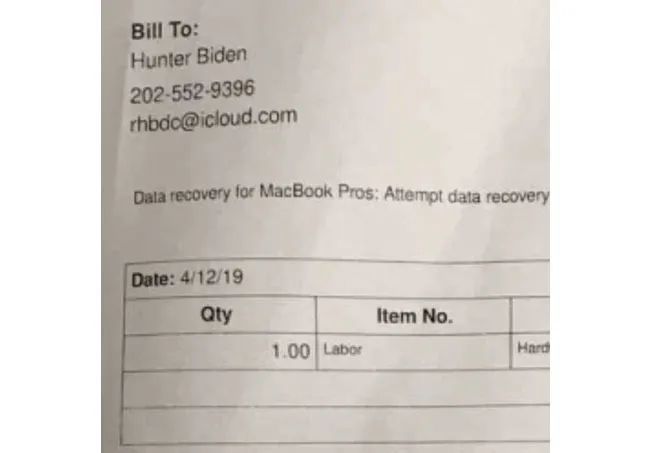 但尽管艾萨克说他无法辨明来者,但在他出示的、当时开列的收据上,却已经列明了亨特·拜登的名字、电话与邮件地址。