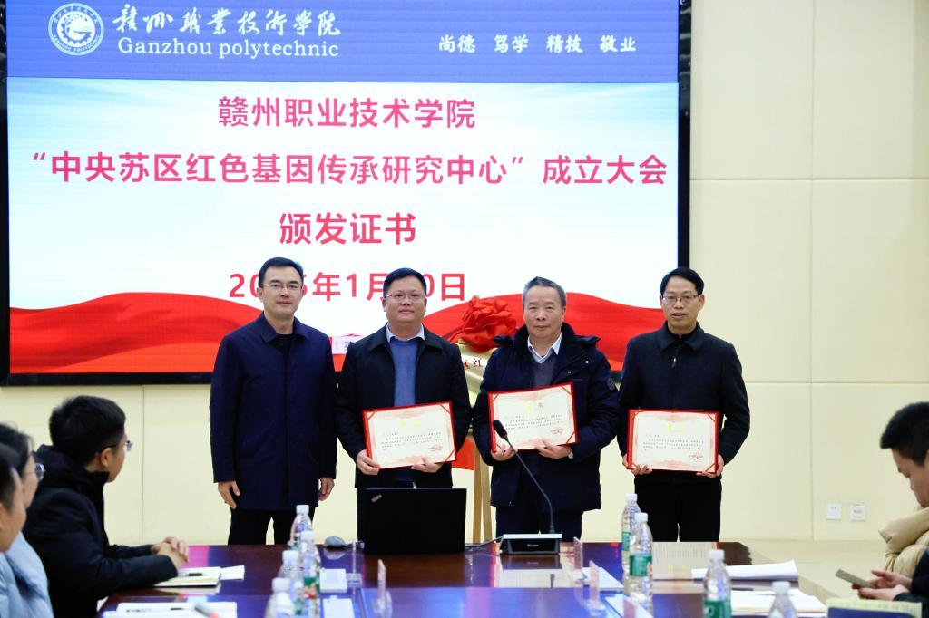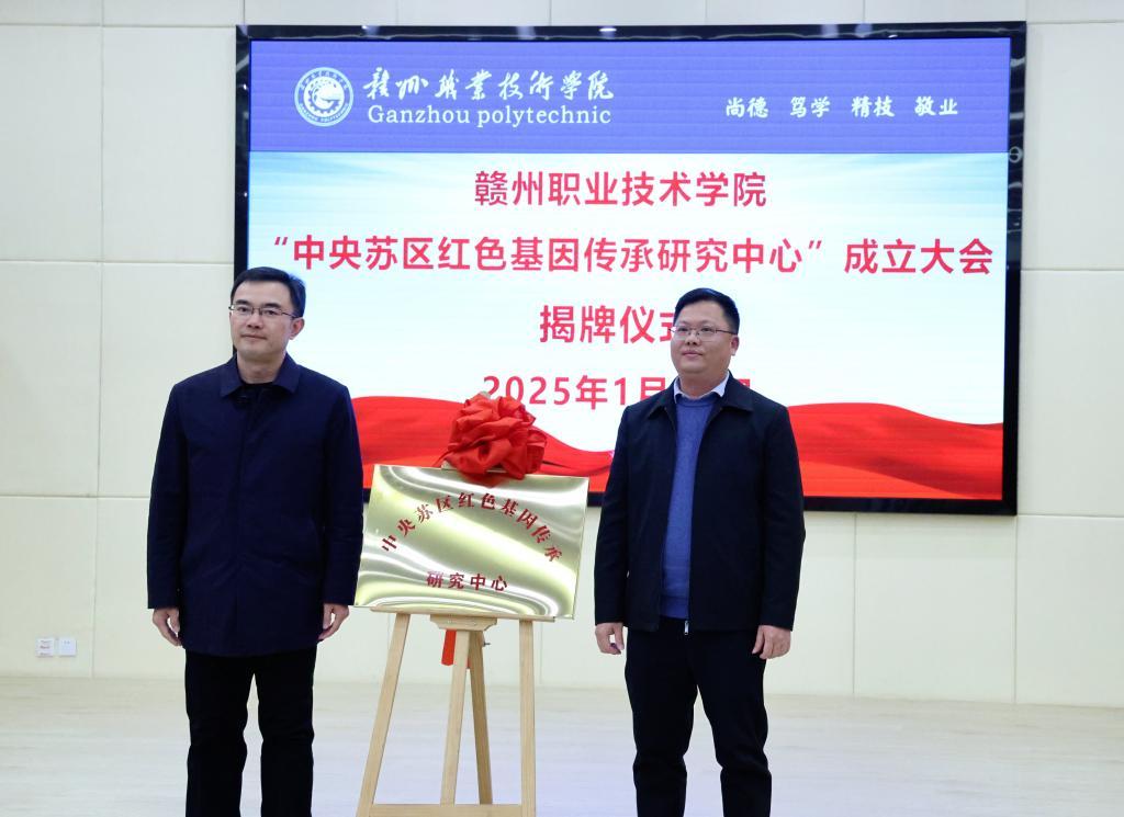 在热烈的掌声中,党委书记温学延与市社科联副主席肖孟春共同为“中央苏区红色基因传承研究中心”揭牌。这一时刻标志着赣州职业技术学院在红色基因传承研究方面迈出了重要的一步。