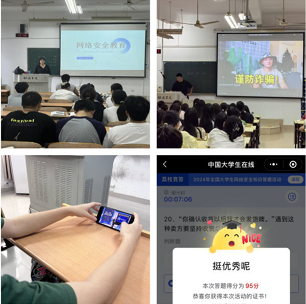 各二级学院围绕网络安全主题,通过主题班会、主题党(团)日、网络安全课、知识竞赛以及观看防诈骗教育视频等活动开展宣传教育,坚持破立并举,营造天朗气清的网络空间,引导师生安全用网、文明用网、健康用网,增强安全意识和防护技能。