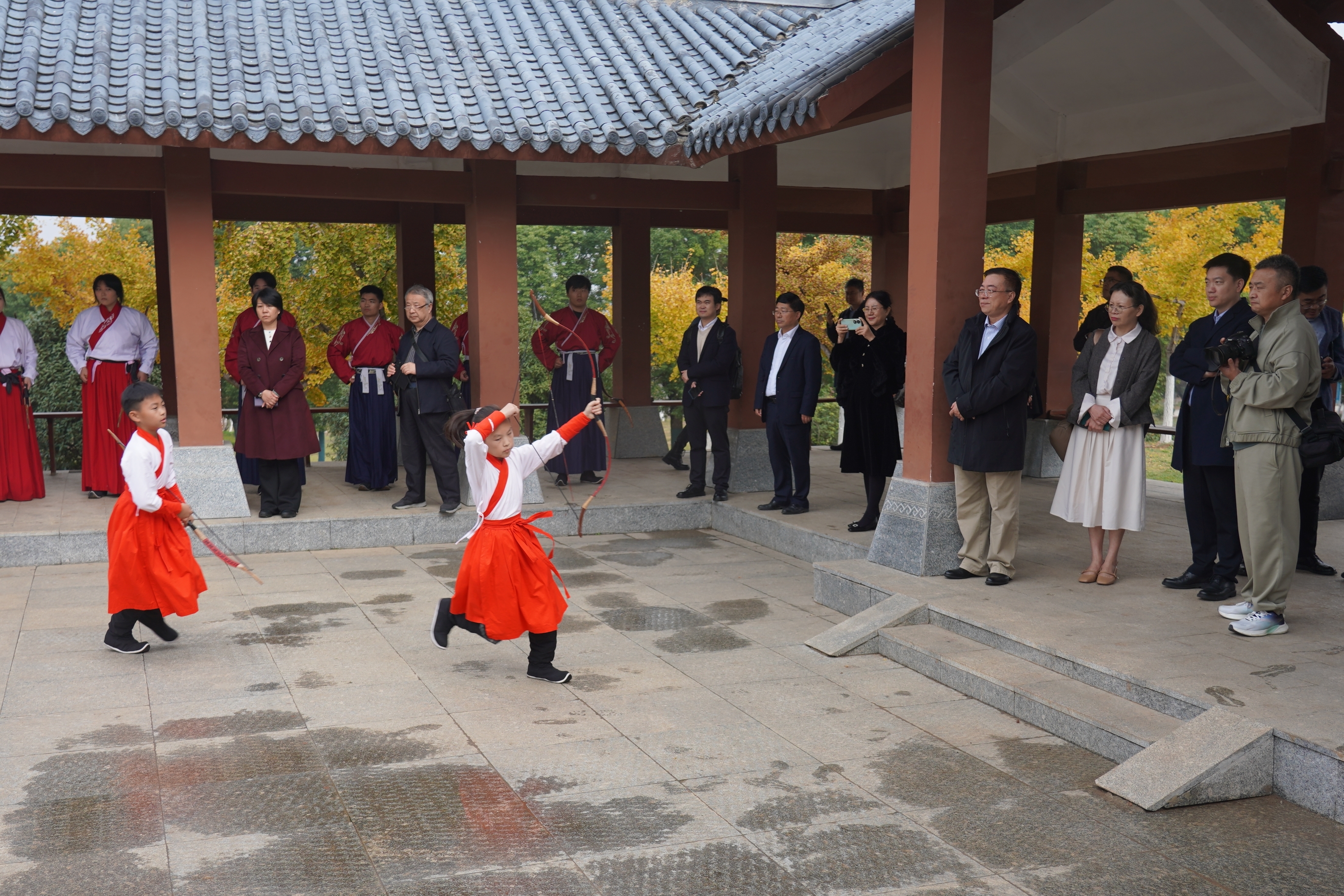 会后,与会嘉宾观赏了江苏建筑职业技术学院及学院的附属小学礼射、乐射及武射展示,三种射艺皆为中国传统士阶层的必备修养。礼射伴随礼仪表现承让之德,乐射伴随雅乐表现中和之气,武射在振奋人心的鼓声中拉开帷幕,学生们身着汉服,力挽强弓,在变换的阵法中,以无形之箭向古代君子保家卫国的豪情壮志致敬。
