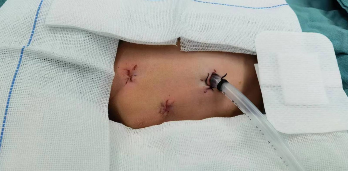 宝宝胎儿期肺囊腺瘤最大径近8cm,出生后第二天最大径迅速增至11cm,呼吸困难。4月19日,患儿出生后第四天,患儿再次躺在了同一个手术台上,处在极度的呼吸衰竭的状态、由平卧位转为侧卧位后,心跳骤停,氧饱和度降至50%以下,肺组织水肿严重,以至于电刀都处于失效状态、整个过程惊心动魄,处处陷阱,由麻醉科、小儿外科、新生儿科和手术室组成的手术团队凭借团队丰富的经验、创新的理论和技术、胆大心细的工作魄力数次从鬼门关把孩子抢回,仅用20分钟成功地完成了具有国际领先水平的新生儿巨大肺囊腺瘤微创胸腔镜肺叶切除术,患儿最终转危为安。
