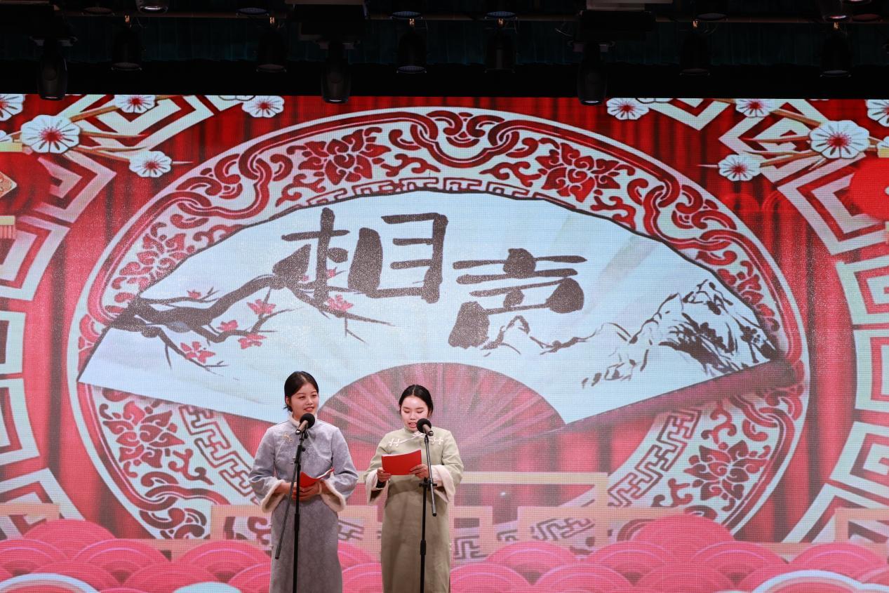 接下来,康复治疗技术专业的师生和国防教官们为大家带来精彩绝伦的八段锦和军体拳表演!老师们带来了精彩的舞蹈《新年快乐》、相声《上课》,让我们在欢乐的氛围中感受到浓浓的节日气息!卢嘉老师一首《爱你等于爱自己》带领我们在歌声中感受爱的温暖与力量,掀起了全场演出的高潮。最后,学校第五届校园十大歌手带来的时代歌曲串烧,祝福大家一起唱响青春,迈向未来!