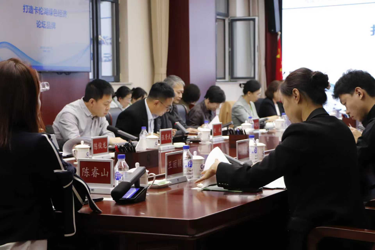 首届卡伦湖绿色经济论坛在吉林工商学院举行揭牌仪式,由知名学者李建臣、长春市九台区人民政府副区长杜鹏进行揭牌。论坛成立了卡伦湖绿色经济委员会,论坛名誉主席、吉林工商学院校长李宝永、首届论坛主席、吉林大学原校领导杜莉教授先后进行致辞,在全场嘉宾的共同见证下,由知名学者李建臣、吉林工商学院党委常委、副校长董本云共同完成“卡伦湖绿色经济论坛组织委员会”揭牌仪式,会议由论坛秘书长、吉林大学赵放教授主持。