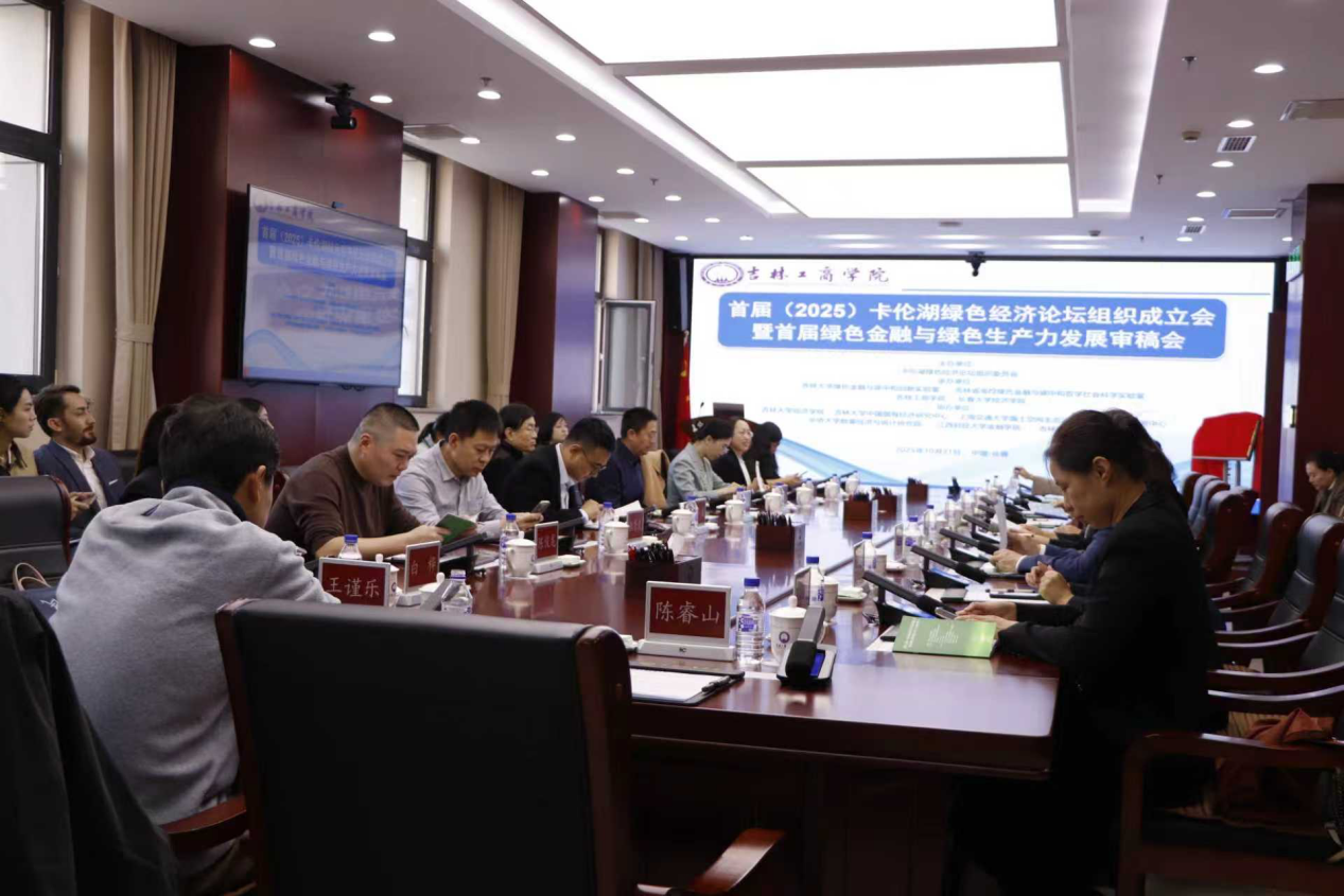 10月31日,卡伦湖绿色经济论坛组织成立会在吉林工商学院举行。来自吉林大学、上海交通大学、哈尔滨工业大学、东北大学、首都经济贸易大学、东北师范大学、广西大学、新疆大学、东北财经大学、江西财经大学、华侨大学、长春理工大学、吉林农业大学、吉林财经大学、长春工业大学、内蒙古民族大学长春师范大学、长春大学、吉林工商学院等高校的学院与科研机构负责人齐聚于卡伦湖畔的吉林工商学院,共同发起成立“卡伦湖绿色经济论坛”。