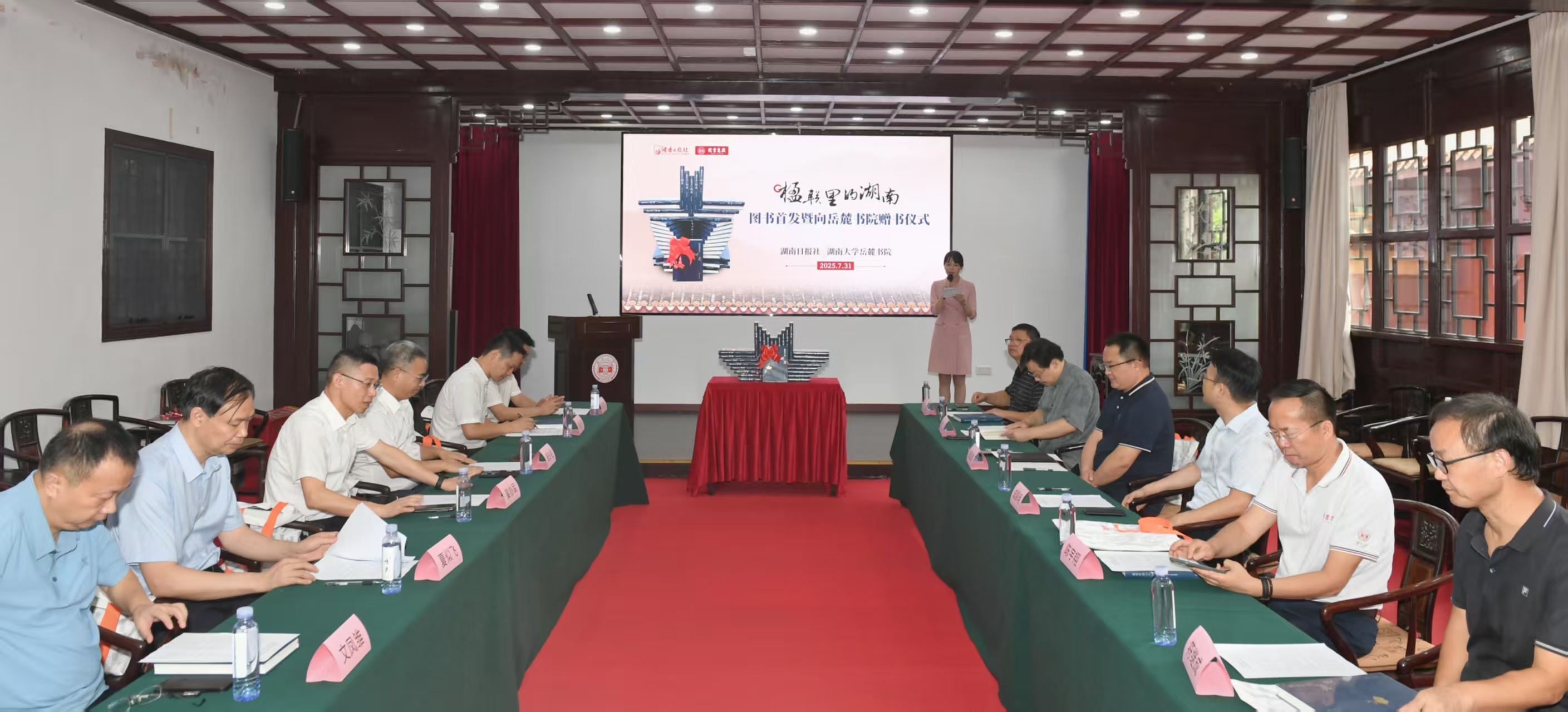 湖南日报社党组书记、社长姜协军代表湖南日报社向岳麓书院赠送了《楹联里的湖南》图书,将由书院予以收藏。