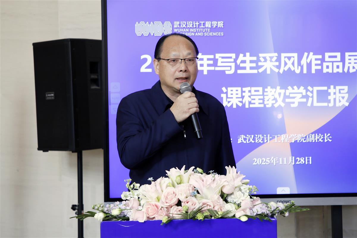 湖北省教育厅体卫艺处处长丁雪峰在致辞中对本届活动的顺利举办表示热烈祝贺,向奋战在美育教学实践活动一线的师生致以诚挚慰问。他指出,武汉设计工程学院美育事业创新发展、成果丰硕,持续举办19年的写生采风作品展,已成为学校乃至全省高校美育的鲜明旗帜。此次展览范围广泛、形式多样、内容丰富,充分彰显出学校艺术设计活动的蓬勃生机。他期许学校持续擦亮品牌,师生携手共谱高校美育改革发展新篇章,为中国式现代化湖北实践和教育强省建设贡献美育力量。