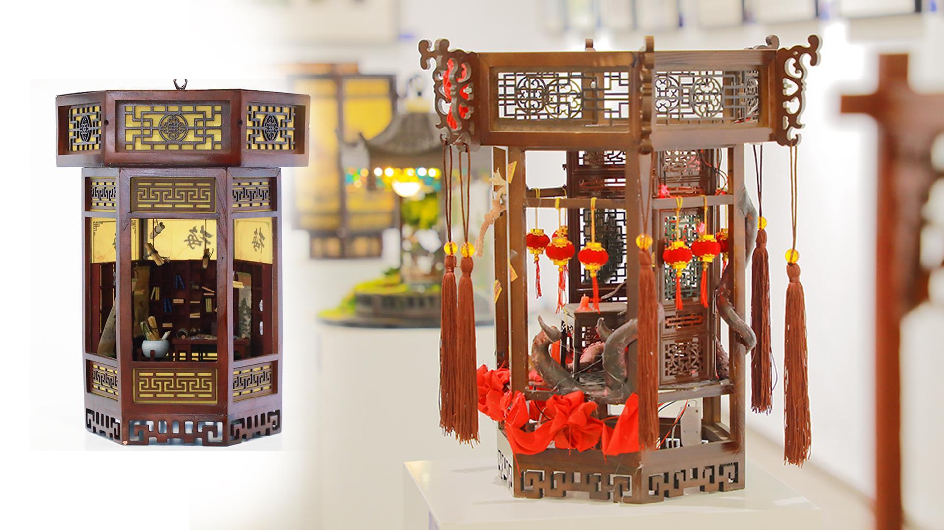 引人驻足观赏、堪称文化传承典范的成龙影视传媒学院宫灯作品别具匠心、尽显中式美学的精致与沉静。这些宫灯多以深棕木构框架搭配回纹镂空装饰,暖光烘托出古雅静谧的空间基调,将生活场景一隅浓缩于方寸之间,摇身一变成为集艺术魅力、文化内涵与历史底蕴于一体的珍贵艺术品。