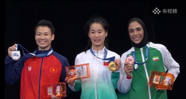 8月12日,在成都世运会武术女子散打60公斤决赛中,合肥师范学院体育科学学院教师、中国散打名将李志勤力克越南选手阮氏秋水,勇夺金牌,这是中国代表团在本届比赛中获得的第17枚金牌。