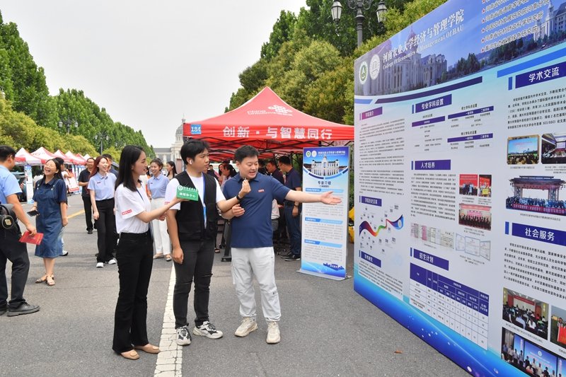 大型东方红收割机、无人播种机、喷雾机、无人喷洒飞行器在校园往来穿梭,近距离感受科技改变生活的便捷;蔬菜、水果、肉、蛋、奶等美食佳肴现场试吃品尝,带来不一样的舌尖美味......这样丰富多彩的校园开放日你见过吗?6月25日,河南农业大学首届“校园开放日”在学校龙子湖校区、文化路校区和许昌校区同步举行,通过一系列特色展示和活动,全面展示百年农大办学历程、文化底蕴、学科特色和校园氛围。